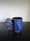 One-of-a-kind, wheelthrown, brown speckled stoneware 17oz mug (3.5"D x 4.5"H) with a butterfly-inspired handle. Hand-dipped in pink and blue glazes for a bold, dynamic finish. Perfect for tea, coffee, or any other beverage of choice!